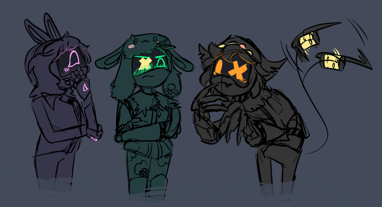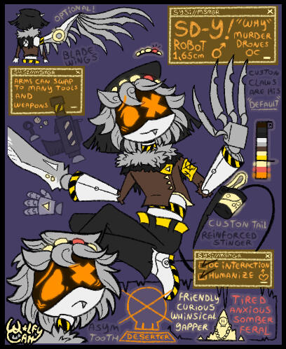 I have been very hyperfixated on Murder Drones as of late and have enough separate drawings to have it's own gallery!If you are curious about the reocorruing OCs shown - Such as Kol and Y - my Toyhouse has their story (WIP) :]